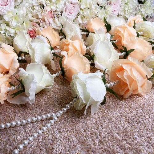 White and Peach Flower and Pearl Palla
