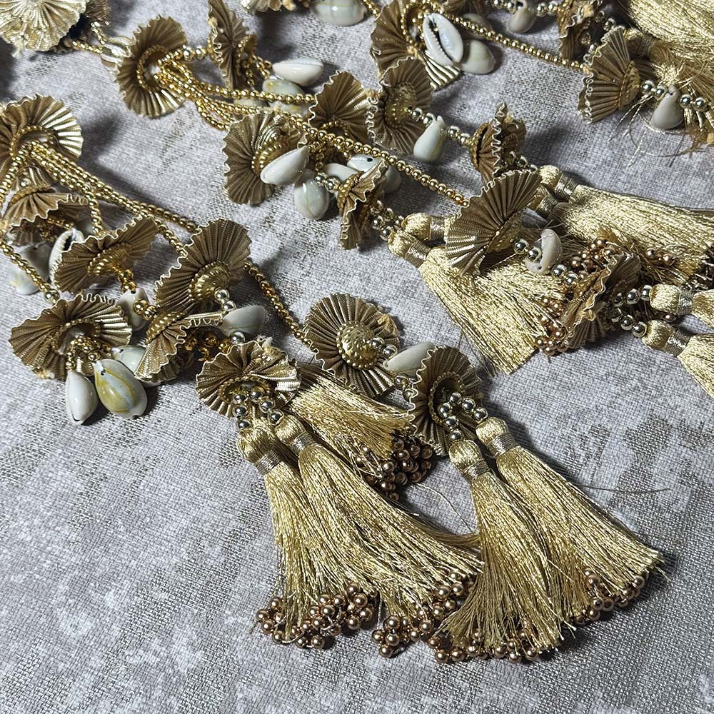 HomeParandi Black and Gold Parandi with Shell and Tassel Design
