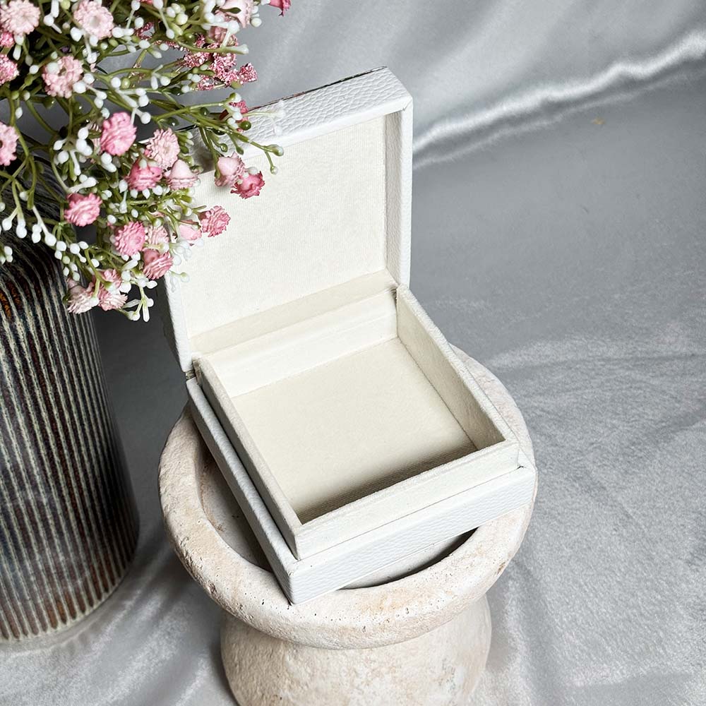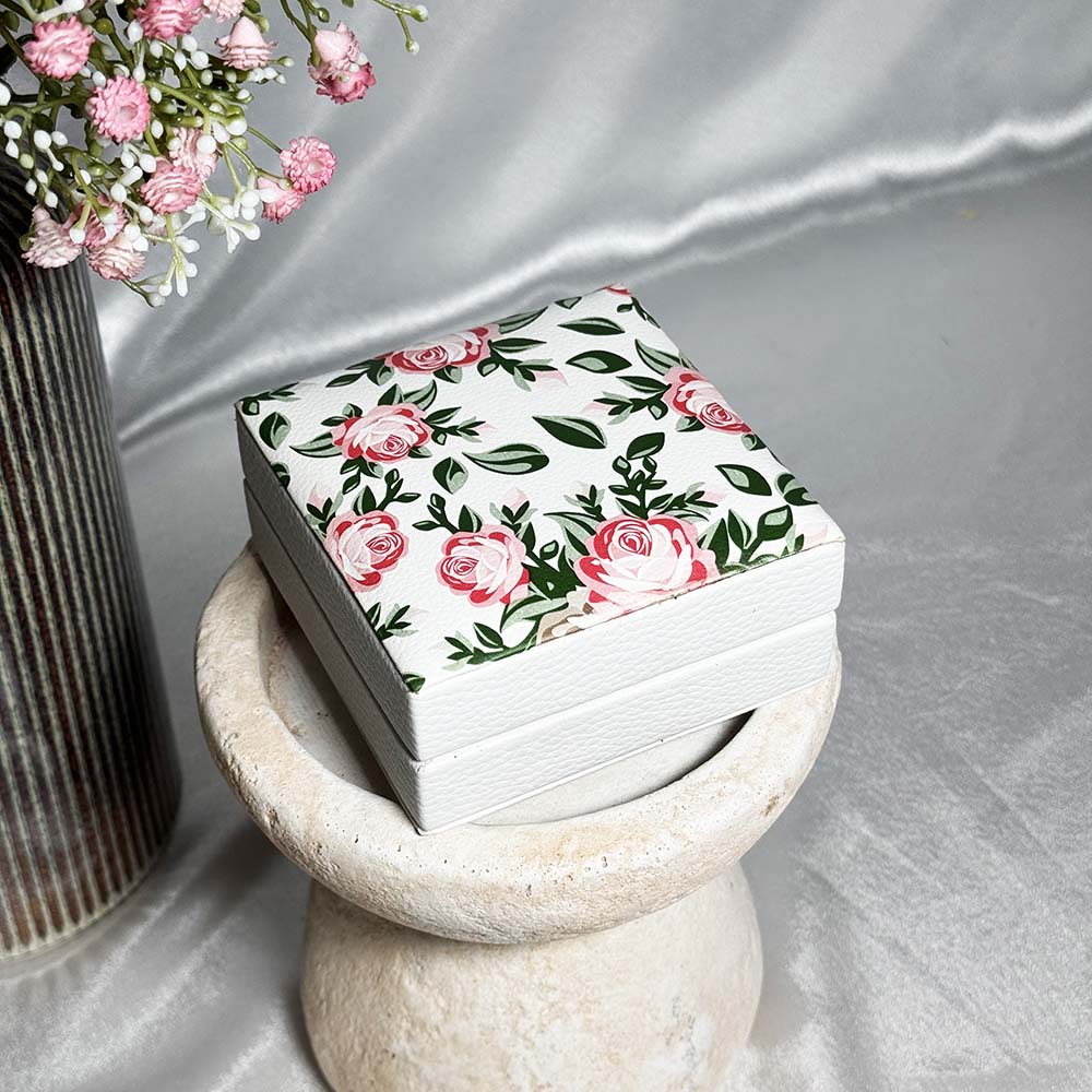 This beautiful small jewellery box is perfect to keep small elegant pieces of jewellery safe, the box is made from high quality leatherette and has a simple but elegant floral design on the lid. The box can be used to store various different small pieces of jewellery and has a tight fit lid when closing.