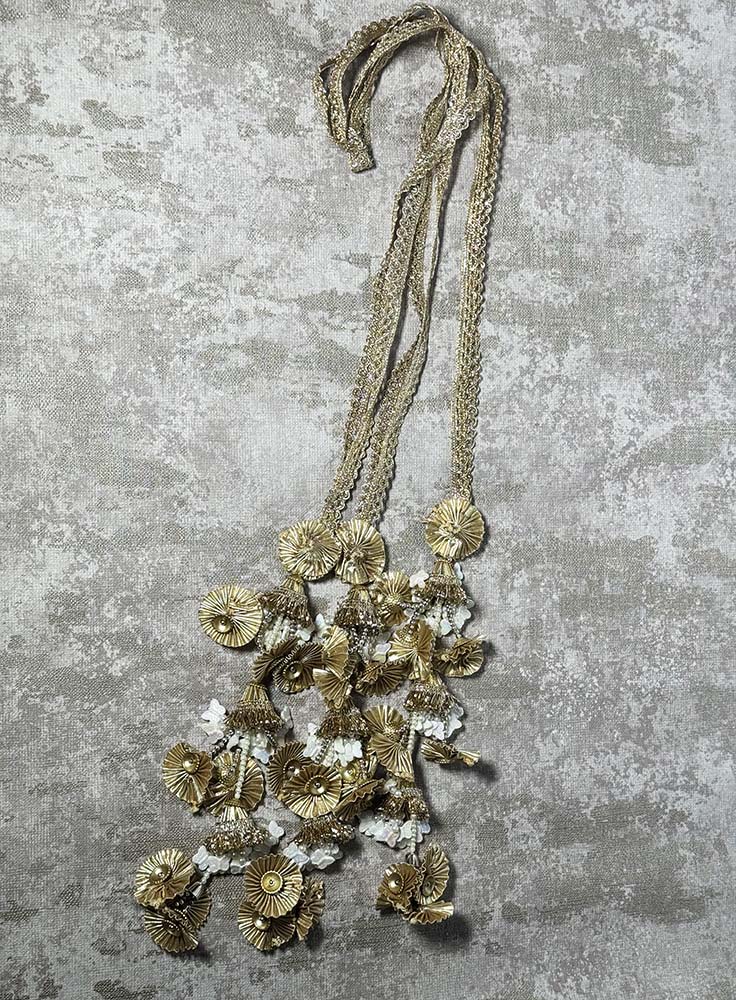 This Parandi is every girls dream! Designed to braid seamlessly into your hair with delicate gold laces, this parandi adds the perfect touch of charm. The three ends feature dainty butterfly designs with a subtle glitter finish, beautifully paired with tiny pearl details for that extra sparkle. A must-have accessory to elevate your traditional look!