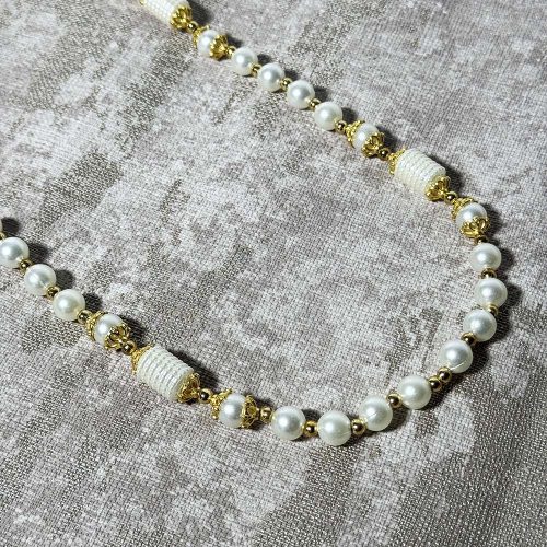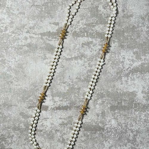 Two Row Pearl Milni Haar with Gold Chakri Bead Design