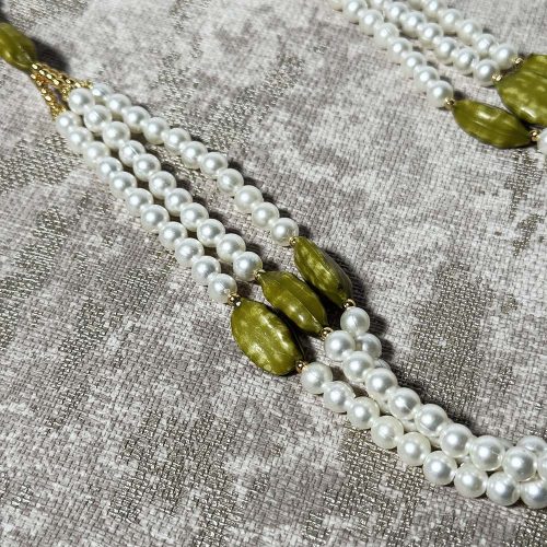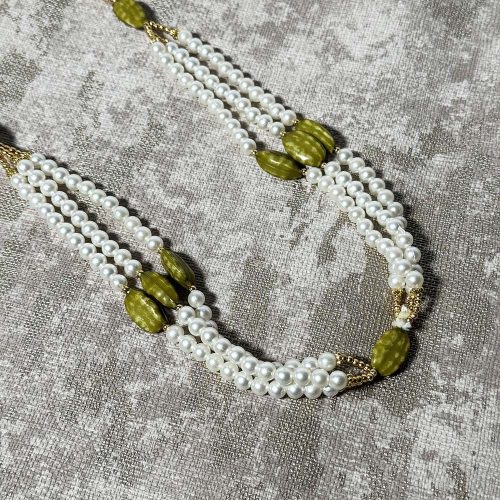 Three Row Pearl Milni Haar with Liechi Bead Design