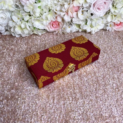 Our beautiful small shagun bags are perfect for handing out during your special events. This bag can be filled with small gifts or sweets to give out to guests. These bags have also been cushioned which adds to the luxury factor of the bag.