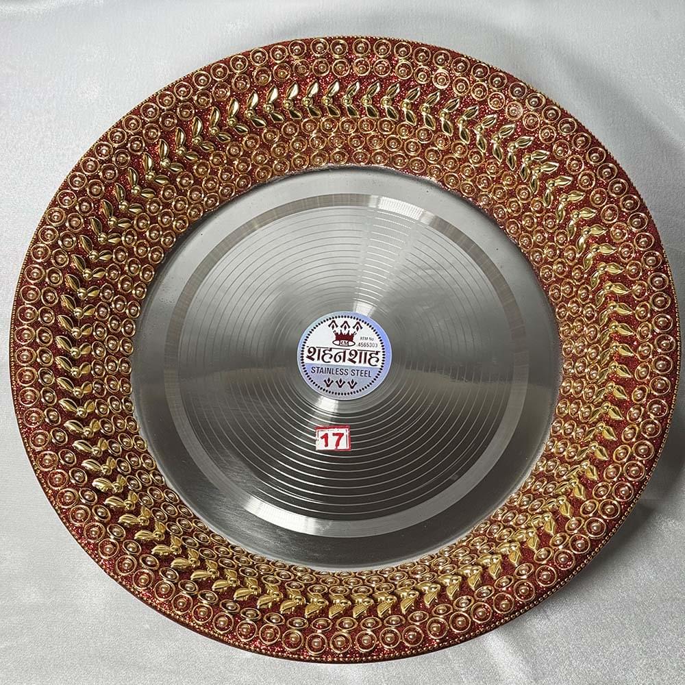 This praat has been beautifully decorated with a glitter red colour running along the border, on top of this sits gold beads, rings and a lace design to uplift the praat. Made from stainless steel this praat will look amazing in during the choora ceremony.