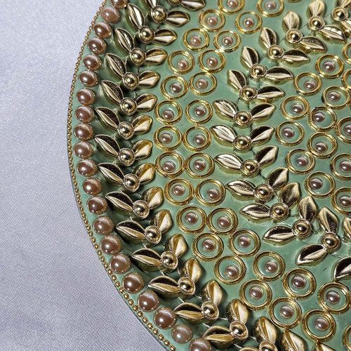HomeUncategorized Sage Green and Gold Border Decorated Thali – 11.5″ Size